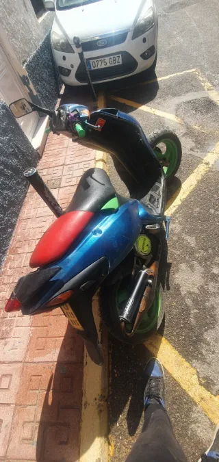 Se vende moto de 49cc con asiento bicolor. - Color principal azul. - Asiento con detalles en rojo. - Diseño deportivo. Escape yassuni z El cambio de nombre lo pagas tu No me hables para bajarle el precio ni cambios el precio es el que es.
