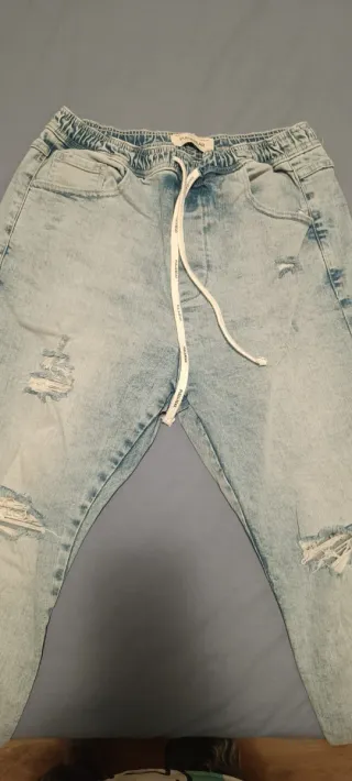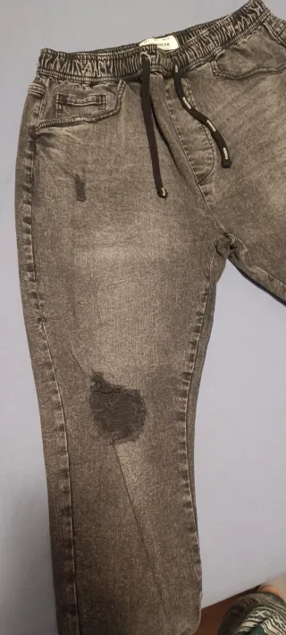 Tejano para hombre con un diseño moderno y desgastado. Cuenta con un cordón ajustable en la cintura para mayor comodidad. - Estilo desgastado y con rotos. - Cintura elástica con cordón. - Bolsillos funcionales.