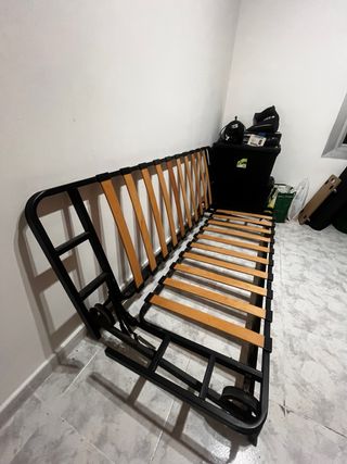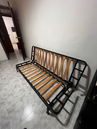 Estructura de sofá cama plegable, lista para usar. - Marco metálico resistente. - Láminas de madera para el soporte del colchón.