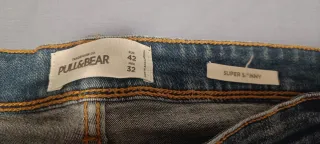 Tejano vaquero de la marca Pull&Bear en color azul. - Talla 42 - Diseño clásico de cinco bolsillos. - Cierre de cremallera y botón.