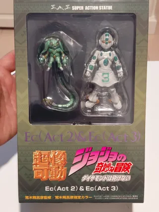 ¡¡ NUEVO SIN ABRIR !! PRECIO NO NEGOCIABLE Figuras de acción Super Action Statue de Medicos, basadas en JoJo's Bizarre Adventure: Diamond is Unbreakable. - Incluye las figuras de Ec (Act 2) y Ec (Act 3). - Diseñadas bajo la supervisión de Hirohiko Araki. - Colores designados por Hirohiko Araki. Figuras Super Action Statue de Medicos Entertainment, que representan a los Stands Echoes Act 2 y Echoes Act 3 de JoJo's Bizarre Adventure Part 4: Diamond is Unbreakable. Figuras de acción móviles que permiten varias posturas. Incluyen los Stands Echoes Act 2 (verde) y Act 3 (blanco). Personajes y Stands del anime y manga.