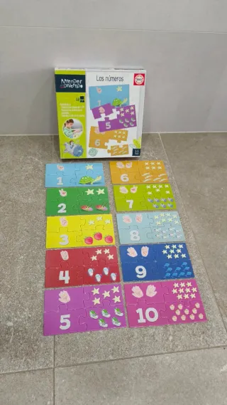 Puzzle Contar hasta 10 de 40 piezas. 🧩 Para aprender a contar jugando. 🧩 El juego consiste en montar los 10 puzles con 4 piezas de puzzle cada uno. 🧩 Juego educativo e infantil para aprender los números y los colores. 🧩 Favorece la psicomotricidad fina y el pensamiento. 🧩 Marca Educa Más artículos en mi perfil para tu lote perfecto 🛍️ Puzle / rompecabezas Juego de mesa / juguete / Montessori / puzzle Puzzle educativo de la marca Educa para aprender los números del 1 al 10. Cada número está representado con su cantidad correspondiente de elementos. - Incluye 10 piezas grandes. - Diseñado para el aprend