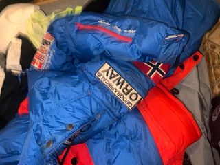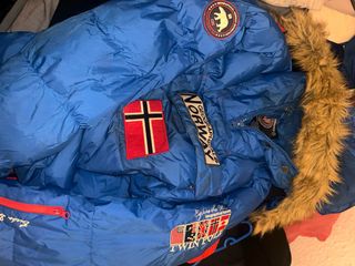 Chaqueta de invierno con un diseño llamativo y detalles únicos. - Parche con la bandera de Noruega. - Insignia circular con un oso polar y texto Geographical Norway Expedition. - Detalle de texto Norway Geographical en la solapa. - Ribete rojo en la cremallera frontal. - Parche inferior con varias banderas y texto TWINPOL. NEGOCIABLE