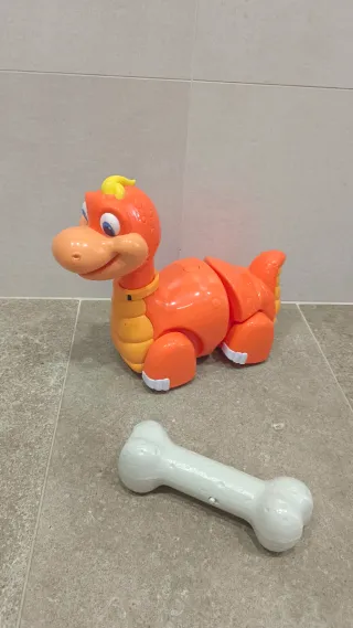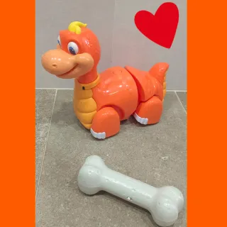 Dinosaurio Dino Andarino 🧡 Marca Bizak. 🧡 Dino Laser es una mascota interactiva divertida que te acompañara allá donde vayas. 🧡 Tiene luces, sonidos y camina donde tú quieras. Apuntando con el láser (hueso) a la zona donde quieres que vaya, el dinosaurio irá hacia allí. 🧡 Tiene sensor delantero y trasero por lo que se mueve para delante y detrás! 🧡 Como nuevo, usado en dos ocasiones. 🧡 Control remoto para bebés / niño / niña. Más artículos en mi perfil para tu lote perfecto 🛍️ Juguete interactivo teledirigido educativo / juego infantil Montessori / Cars / hot wheels / control remito / mando a distancia Montessori