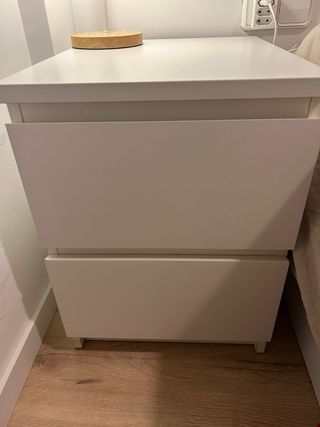 Mesitas de noche Malm de Ikea en color blanco. Un diseño moderno y funcional para tu dormitorio. - Dos cajones amplios.
