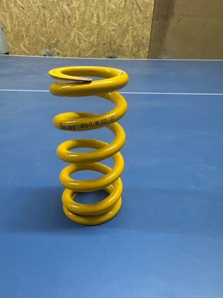 Muelle de suspensión para bicicleta de montaña de la marca Ohlins. - Color amarillo brillante. - Carga de 502 lb.