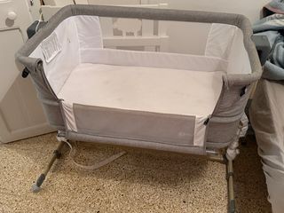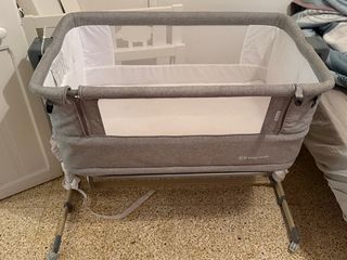 Cuna colecho de la marca Kinderkraft, ideal para tener al bebé cerca. - Diseño moderno en color gris. - Laterales de malla para ventilación. - Incluye colchón. - Se convierte en parque