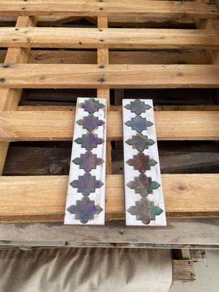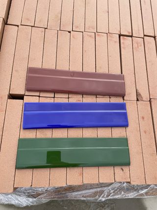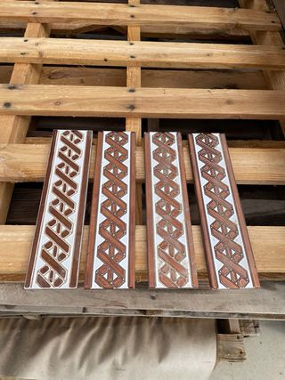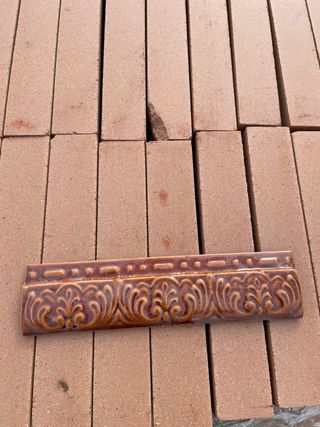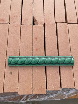 Molduras plana de cerámica en color marrón, azul y verde, unidades limitadas. - Medidas: 7 cm de alto x 28 cm de largo.