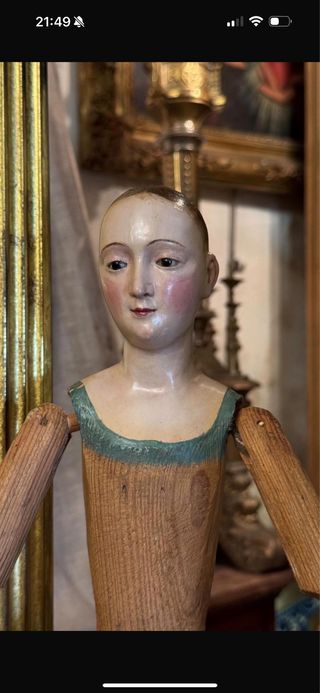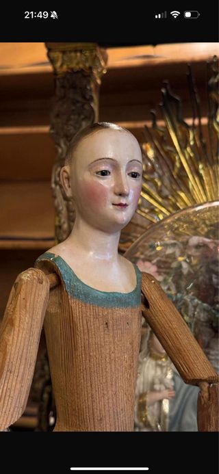Antigua talla de Virgen realizada en madera policromada. Una pieza con encanto y detalles, mide 50 cm de altura. - Material: Madera. - Técnica: Policromía. Solo interesados, precio por privado. Solo venta en persona.