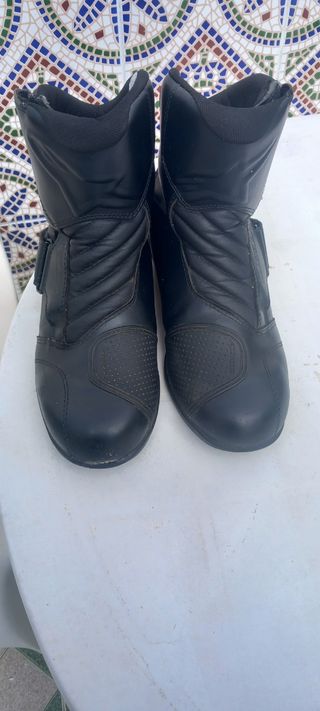 Botas de moto de cuero negro, diseñadas para proteger y ofrecer comodidad. - Cierre con velcro y cremallera. - Protecciones en tobillo y espinilla. - Suela antideslizante. - Talla 41