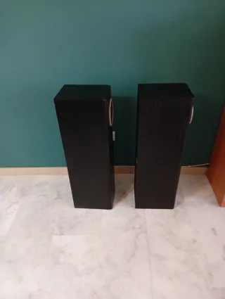 Se venden bafles tipo columna en color negro, reacondicionados. Eran unos bafles Sangsung, les dejo las pegatinas para que lo veas, tiene filtros y tweeters originales, los altavoces de graves son los que salen en la foto rotos y se han sustituidos por otros de las mismas características. No pongo que son Sangsung por este motivo, se han reaccionado, aunque si entiendes del tema verás que ni los altavoces originales son de dicha marca. Tienen una calidad de sonido sorprendente y se les nota en algunos desperfectos el paso del tiempo de ahí su precio. Pregunta sin compromiso . Tengo mas bafles y altavoces. - Diseño elegante y modern