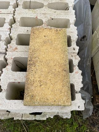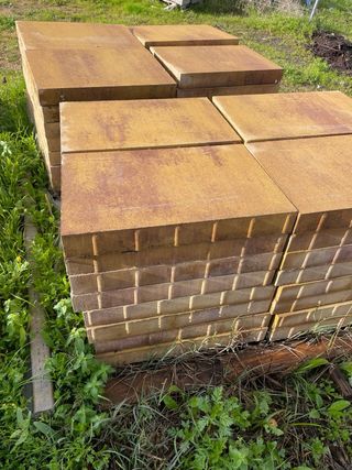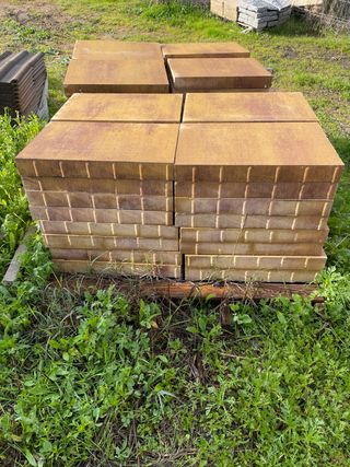Adoquines prefabricados hormigón, 60 unidades disponibles. - Medidas: 60 cm de largo x 40 cm de ancho x 7 cm de grosor. - Color: Albero