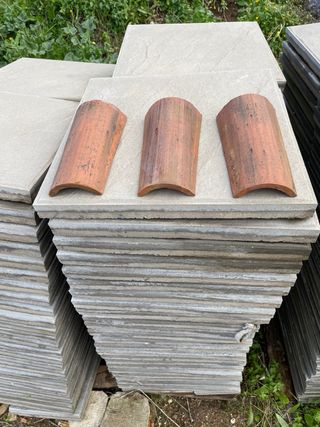 Lote de tejas mixta de color paja, ideales para cubiertas. - Fabricante: Escandella -Cantidad: 369 und.