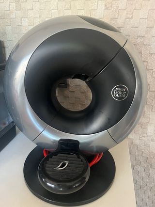 Cafetera de cápsulas Nescafé Dolce Gusto modelo Eclipse. Su diseño esférico y moderno le da un toque único a tu cocina. - Color plateado y negro. - Base negra con detalles rojos. - Bandeja recogegotas.
