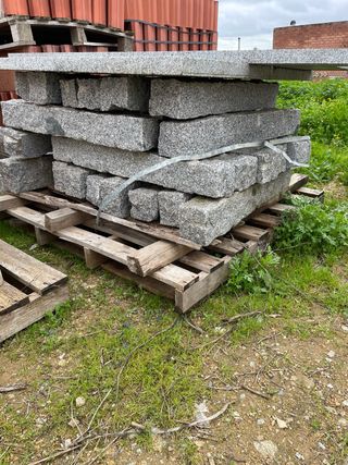 24 mtl. de bordillos de granito gris con acabado rústico. Medida: 10x10 cm Largo de cada pieza: 80 cm