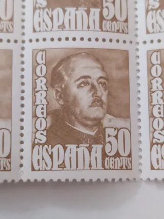 Conjunto de cuatro sellos de correos de España con la efigie de Franco. - Valor facial de 50 céntimos. - Diseño en sepia. - Borde dentado característico.
