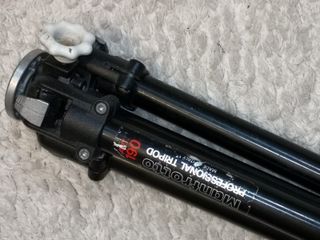 Trípode profesional Manfrotto 190. Tiene su uso, pero funciona bien. Tapa de goma de la columna ausente, tornillo de fijación de Linhof. Cabezal aparte.
