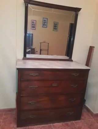 Cómoda antigua de madera con tapadera de mármol