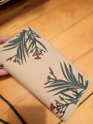 Billetera con un diseño de bordado de pájaros y ramas. - Billetera con cremallera. - Diseño de pájaros y follaje bordado. - Material texturizado.