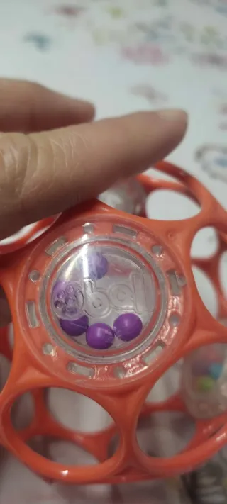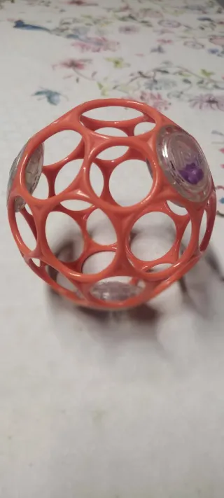 Pelota de estimulación sensorial con diseño abierto y elementos transparentes. - Color naranja. - Diseño de rejilla. - Incorpora elementos transparentes con pequeñas cuentas en su interior.