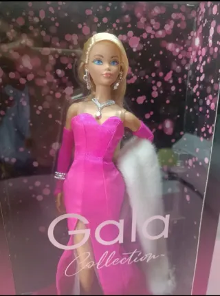 Muñeca Barbie de la colección Gala, modelo Pink Premiere. - Vestido largo rosa. - Accesorios de joyería. - Mide aproximadamente 30 cm.