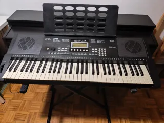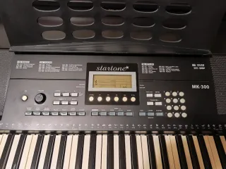 Teclado electrónico Starone MK-300 con soporte para partituras. - Diseño moderno en color negro. - Altavoces integrados. - Pantalla LCD. - Soporte para partituras. - Base ajustable. Incluye soporte para el teclado, de altura regulable.