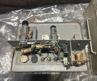 Generador de señales de la escuela de radio Maymo.Ermsa con dial de kilociclos y selector de bandas. - Diseño frontal azul con detalles plateados. - Indicadores numéricos y alfabéticos en el dial. - Múltiples salidas y selector de atenuador. -no comprobada, para colección piezas o posible reparación