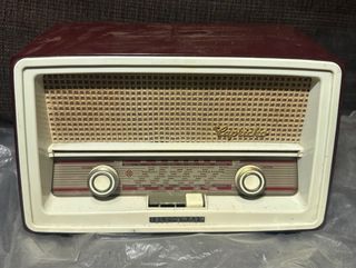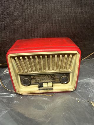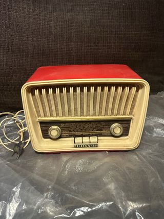 Radio antigua de la marca Telefunken, modelo Capricho U-1925-II. Un diseño clásico que evoca nostalgia. - Carcasa de color rojo y crema. - Frontal con rejilla y dial. - Botones y mandos de control. -no comprobada, para colección piezas o posible reparación