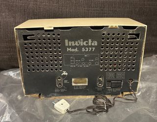 Radio Invicta modelo 5377 con tecnología a válvulas. Un diseño clásico que evoca la nostalgia de la radio tradicional. - Carcasa de color beige. - Frontal con rejilla y dial de emisoras. -no comprobada, para colección piezas o posible reparación