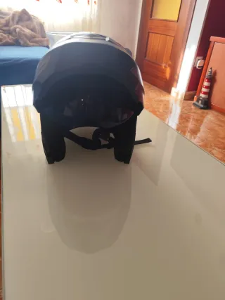 Casco de moto integral de la marca BLD con un diseño moderno en negro y detalles dorados. - Visera transparente. - Cierre de seguridad. - Ventilación superior.