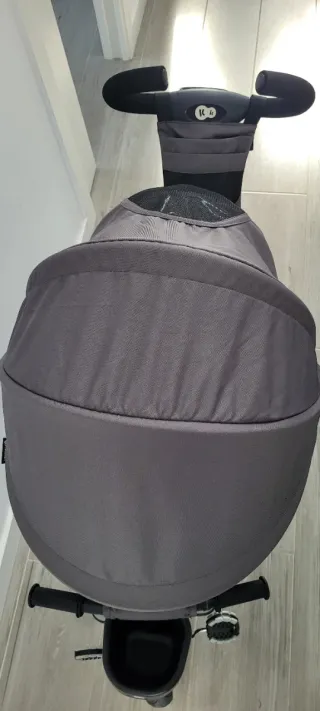 Triciclo Kinderkraft Aveo en color gris, ideal para nuestros pequeños. - Capota para proteger del sol. - Asiento acolchado con arnés de seguridad. - Reposapiés y posavasos. - Cesta de almacenamiento. - Tiene distintas posiciones para poner el asiento. Contramarcha o a la inversa. Se ha usado solamente 5 veces. Ideal para regalo