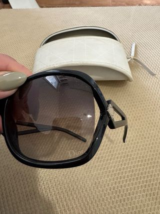Elegantes gafas de sol Dior con montura negra y lentes degradadas. - Incluye funda protectora. - Diseño moderno y sofisticado.