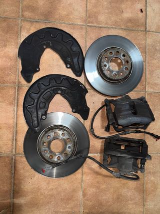 Conjunto de frenada completo para coche, con discos de 288mm y anclaje 5x112. - Discos de freno. - Pinzas de freno con pastillas - cubre discos ( procedentes de un audi a3 1.8tfsi 8v ) Precio algo negociable