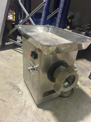 Picadora de carnicería profesional con boca de tamaño 32. Fabricada en acero inoxidable, es robusta y duradera. - Bandeja superior de gran capacidad. - Interruptor de encendido/apagado. - Cuerpo principal de acero inoxidable. Trifásico