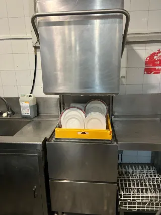 Lavavajillas de capota profesional, ideal para negocios de hostelería. - Construcción robusta en acero inoxidable. - Cesta para platos incluida.