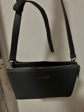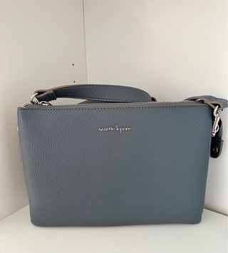 Bolso de cuero de la marca Nanette Lepore. - Material: Cuero - Color: Gris - 3 compartimentos en el interior ; uno de ellos con cremallera.