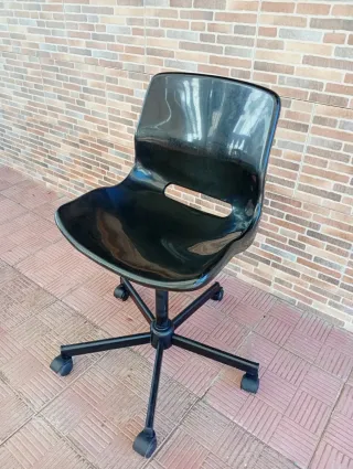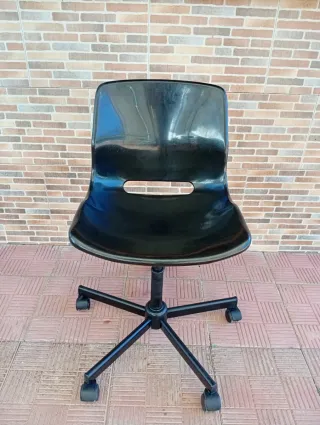 Silla de oficina con un diseño moderno y funcional. Su base con ruedas permite un fácil desplazamiento. - Asiento y respaldo ergonómicos. - Base de cinco patas con ruedas. - Fabricada en plástico y metal. - Sistema regulable en altura giratorio.