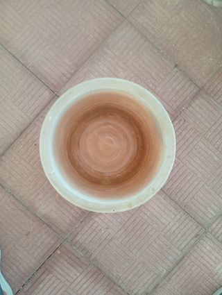 Bonita maceta con un diseño musical único. Ideal para dar un toque especial a tu hogar o jardín. - Decorada con violines y notas musicales. - Borde superior en color beige. - Base en color azul.