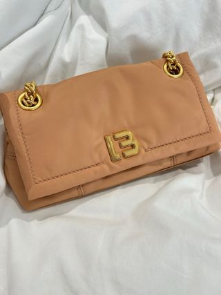 Bolso de la marca Bimba y Lola con un diseño acolchado y detalles dorados. - Acabado en color beige. - Cadena dorada para llevar al hombro o cruzado. - Logo metálico dorado en la parte frontal.