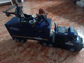Set de juego PinyPon de temática policial, incluye un camión y figuras. - Camión de policía con compartimentos. - Figuras de policías. - Accesorios temáticos.
