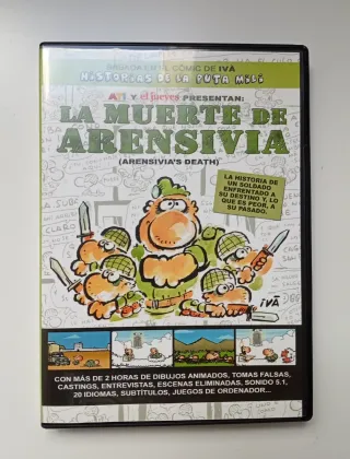 DVD de La Muerte de Arensivia, basado en el cómic de Ivà. - Más de 2 horas de dibujos animados. - Incluye tomas falsas, castings y entrevistas. - Escenas eliminadas. - Sonido 5.1. - Disponible en 20 idiomas con subtítulos. - Incluye juegos de ordenador.