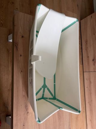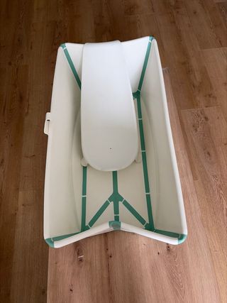 Bañera plegable Stokke en color blanco, ideal para el baño del bebé. Incluye el adaptador para recién nacidos. - Diseño plegable para fácil almacenamiento. - Adaptador para recién nacidos incluido.