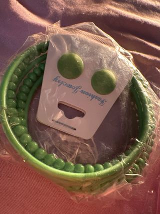 Conjunto de bisutería con pulseras y pendientes. - Dos pulseras de cuentas. - Pendientes a juego.