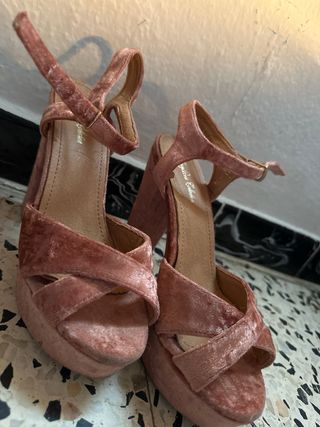 Elegantes tacones con un diseño moderno y material suave. - Tacones de plataforma. - Diseño de tiras cruzadas. - Material de terciopelo. - Correa ajustable al tobillo.
