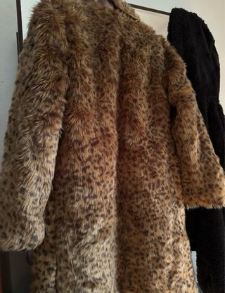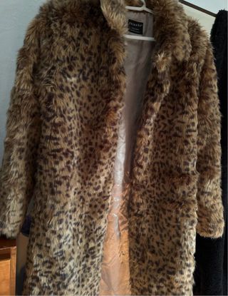 Abrigo de pelo sintético con estampado de leopardo. - Diseño de pelo largo y suave. - Estampado animal print. - Ideal para mantener el calor en invierno.