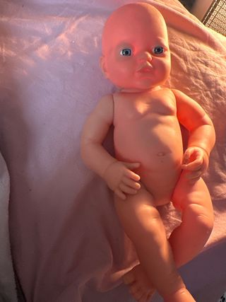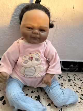 Muñeca de bebé con aspecto realista. - Ojos azules. - Ropa de bebé blanca. -precio negociable