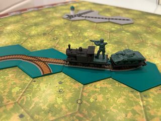Conjunto de losetas de vías de tren para el juego Memoir 44. Incluye piezas de vías y una estación. El pack incluye 19 losetas: 11 rectas 5 curvas 4 bifurcaciones 1 Estacion 1 puente *Posibilidad de pedir el tren con 2 vagones por 3 €mas. Se pueden pedir mas o menos unidades , pedir presupuesto. - Piezas de vías de tren. - Una loseta de estación.
