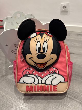 Mochila infantil con el diseño de Minnie Mouse. - Color rosa. - Orejas 3D. - Bolsillos laterales de malla. - Cierre de cremallera.