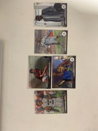 Lote de 5 cartas de fútbol Topps Champions League. - Incluye cartas de Neymar Jr., Cristiano Ronaldo, Marco Van Basten, Andrés Iniesta y Kaká. - Cartas de la colección Topps Champions League.