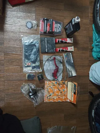 Lote de repuestos para moto Derbi Senda. - Puños RENTHAL GRIP TECH. - Embrague KEVLAR CLUTCH DISCS VOCA. - Maneta con embrague hidráulico. - Cigüeñal. - Juego de retenes - Cadena VOCA - Pistón de 49c.c - Filtro del Aire STAGE 6 - Aceite transmisión - Juego de juntas del motor Y dos botes de regalo de aceite 2T de 125ml. Precio no negociable, ya está barato de por si.